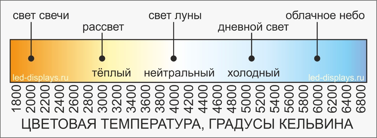 Теплота светового потока измеряется в Кельвинах условно делится на 3 вида: